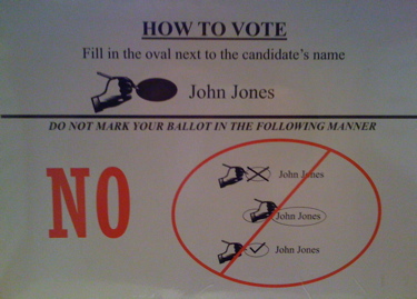 My youngest son (3) had his first experience at the polls on this Super Tuesday. Of course he has yet to declare a party affiliation, for today he was only observing the process, and quite a smooth process it was. There are a variety of ballots and machines available for casting votes in this country. For many years I used the punch card process. Some areas of the country employ a touch screen. Standardization would be a good goal for the country some day. In my precinct, we use a very low tech paper and pen method. Although it was not fancy, it was quite orderly and very easy.We entered the polling place at about 8:30 am to find there was no line. Simply gave the official my name and address, signed for a ballot, and went behind a cardboard booth to vote. Every aspect of the process was clear and well signed. Granted the signs could use a little updating, but hey, this is not about the presentation, it’s about the content. Once again my iPhone camera comes in handy.