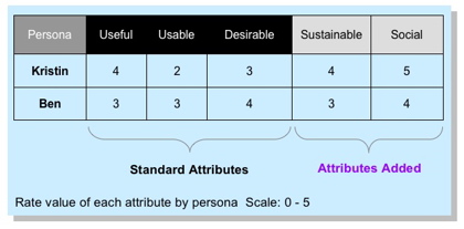 Third – Creating Personas that Support Engagement was given jointly by Neil Clemmons of Critical Mass and Mike Madaio from QVC. I won’t go into defining personas or how to use them in this post. You can easily find that through a simple search. The value in this talk was how Critical Mass extended the Forrester useful, usable, desireable usability model by adding sustainable and social to the persona matrix.