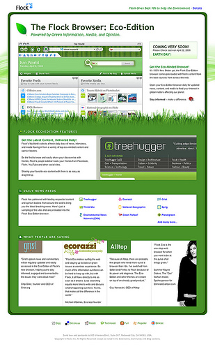 Best of all, Flock will donate 10% of its search proceeds to a green charity of choice as voted by the Eco-Edition users at the end of the year. I discover more and more cool things about Flock everyday.