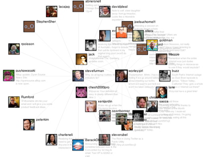 You can then click on other Twitterers as well and drag the images around on the page to get a better look at who’s in the various networks. It keeps expanding each time you click. There’s also a full screen mode. So what is it good for? Well it’s hard to say. More than anything it’s just a fun way to see the Twitter networks come alive, and maybe find someone you’d like to follow. Does everything really need a reason?