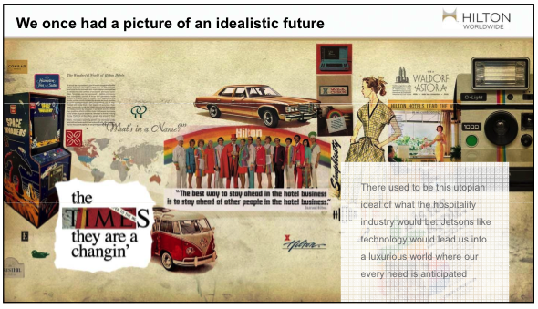 One of the most entertaining and genuine presenters of the forum was Virginia Suliman, VP of Digital Design and Development for Hilton Worldwide with Hospitality is All Around You: How Hilton Delivers Consistently Good Multichannel Guest Experiences. I’m a Hilton Honors member and have been for a while. It’s a brand on my personal watch list. She began with a nod to a world gone by, a nostalgic look at Conrad Hilton’s original vision for the hotel chain. Mr. Hilton wanted there to be a Hilton on the moon. Connie, have you taken leave of your senses? it’s location, location, location. The moon is not on the way to any place.