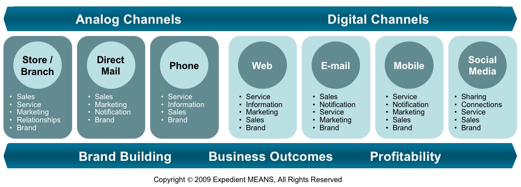 Putting advertising aside, there are more digital channels used by consumers than analog channels today (see graphic below). And the digital channels are newer, richer, more interactive and can be easily shared. This means your digital agency’s role is increasingly more important than ever before. The fact that technology powers the new digital channels has actually hindered exploration and adoption among the big firms. That’s because traditional marketers don’t fully understand these new channels and can easily become infatuated with the technology. Suddenly their cry becomes about the technology and that drowns out strategic conversations. “We need a Twitter stream! Get me an iPhone app, now!” Oftentimes these take the form of demands of traditional agencies or even interactive agencies who have no real depth of experience in either mobile or social.