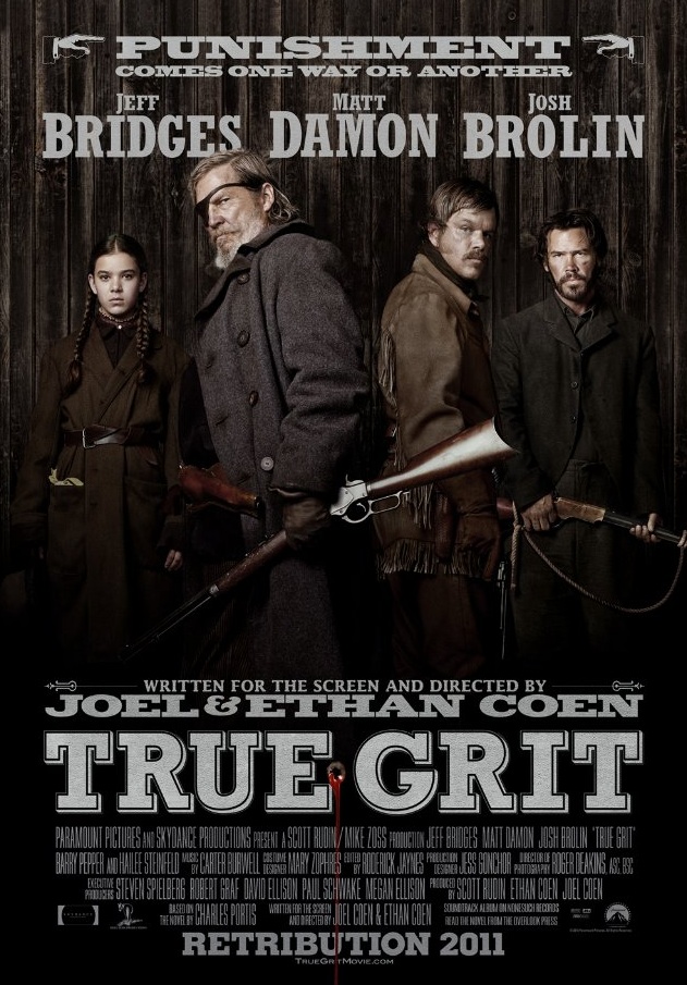 This True Grit is not a remake of the 1969 John Wayne picture, but a new cinematic interpretation of the novel by Charles Portis. It was the language in the book that drew the Coens to this project. Their love of words was the catalyst and it combines wonderfully with their ability to bring their unusual brand of “theater of the mind” to celluloid. The Coens benefited from sticking with Portis’ classic story line and carefully crafted scenes. Some Coen films take us over speed bumps as they climax, oftentimes ending abruptly after having been so carefully paced, leaving us perplexed, even unsatisfied. Not the case here. The finished product works so well on so many levels and it will be a force to be reckoned with come Oscar night.