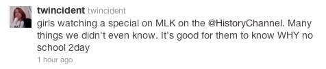 Here’s one of my favorite Tweets of the day and it has nothing to do with business or social media or frameworks, roadmaps, predictions about the next iPad or anything else that is of marginal value when measured against the backdrop of Dr. King’s accomplishments. Instead, someone thought, took action, then Tweeted. Something is going to happen.