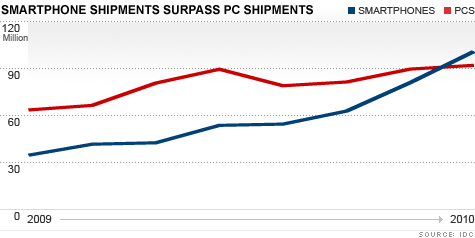 Pundits aplenty have been predicting that smartphones will be the predominant device for accessing the web in the near future. That future may be accelerating. IDC, the International Data Corporation, has reported that smartphones have now out shipped personal computers.