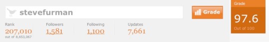 What do I have to show for this? Well there’s my Twitter Grade, 98 out of 100. So I got that going for me, and that’s nice.