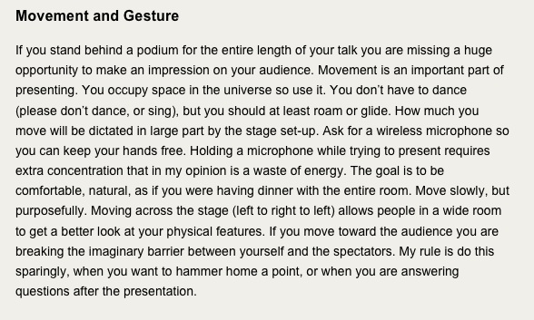 The topic is public speaking. I do it a lot and you probably do a fair bit of it as well. If not, you are going to. I firmly believe that being good (not necessarily great) at speaking before a group of people is a critical skill to hone. It opens doors to opportunity, promotions and financial rewards. When I say public speaking, it can mean to a small group of senior managers as you present your business case, or an auditorium full of people who have paid money to hear what you have to say.