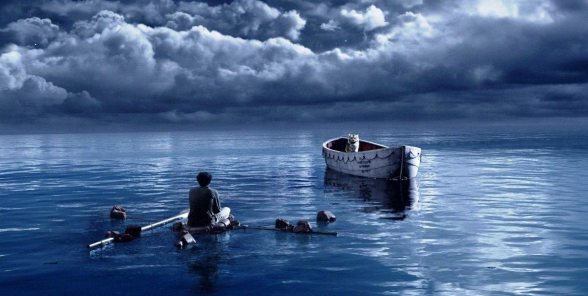 Pi Patel lives with his brother and parents in India. They are zookeepers and beyond that seem to be quite ordinary. The children attend school, the father works the zoo while the mother tends to the household duties. Pi is short for Piscine which in grammar school is a disaster. He tries to shorten his name to Pi and demonstrates his seriousness by taking the mathematical string of Pi and writing it across multiple blackboards in math class. He is deeply curious about many things and is drawn to one religion after another. His parents tolerate Pi’s bouncing about spiritually, but finally his father tells him that one needs to choose a path. Pi struggles with that concept, as he likes to keep his options open.