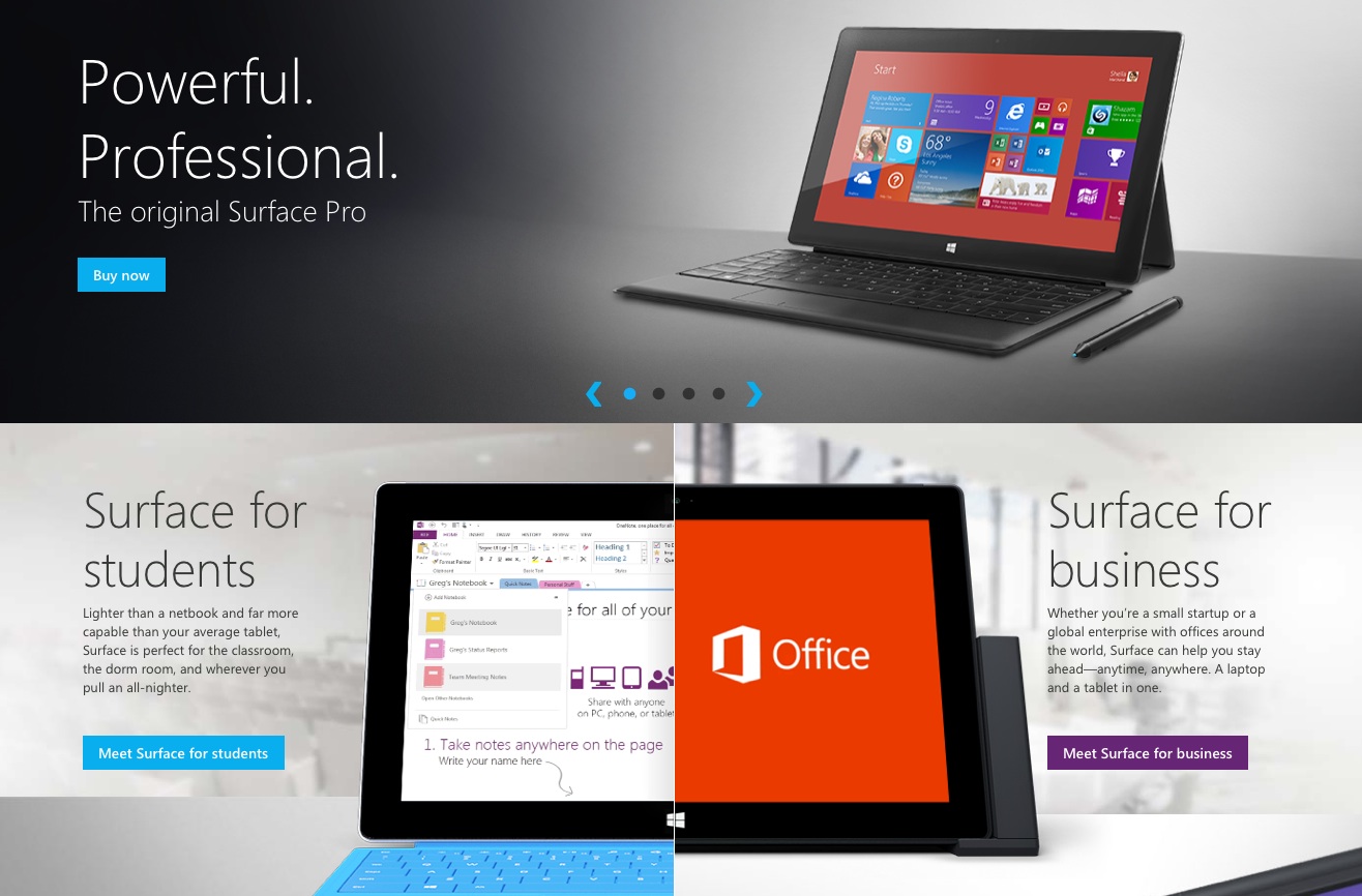 Microsoft is also getting in the game. They are simultaneously upgrading their product design as well as their sites. Their Surface experience is excellent and they are working hard to put the brand back on track after years of being completely lost.