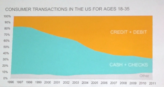 One study asked consumers how they will pay for things in the future. Every one of the presented forms of payment rose except credit, debit and cash. All three showed a decline, with cash leading the way. Certainly it’s very hard to be confident about a survey looking six years out. In the technology innovation mind it’s an eternity. Many disruptive species will be born in that time. But the scale and footprint of payments is vast and when you add in the generational and geographical aspects one cannot be faulted to remain skeptical.