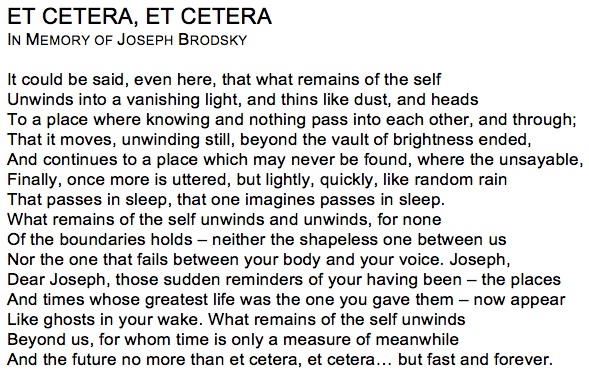 Poem Et Cetera, Et Cetera by Mark Strand published in The New Yorker Magazine